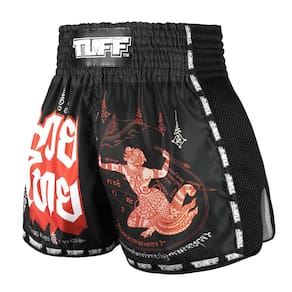 Shorts TUFF Muay Thai: Os shorts de corte clássico são inspirados na era dourada do Muay Thai nos anos 80. A cintura baixa e o corte curto com fendas nas pernas nas aberturas dos dois lados para maximizar a amplitude de movimento.