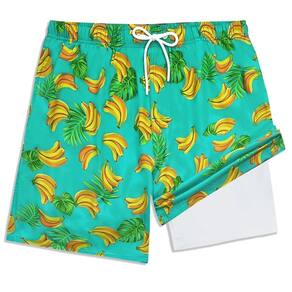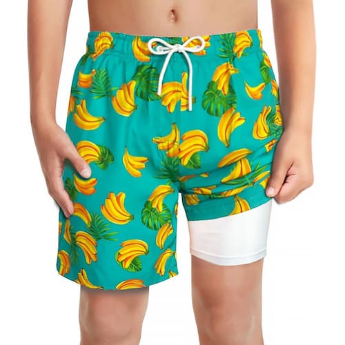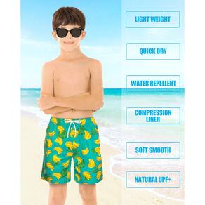 LUCOWEE Calção de banho para meninos com cueca boxer de compressão antiatrito shorts de natação elástico FPS secagem rápida, Bananas verdes - Tecido elástico de 4 vias reciclado: 90% poliéster reciclado, 10% elastano, material mais espesso. Shorts de natação de qualidade, leve, de alto desempenho e repelente de água para secagem rápida, recursos de absorção de umidade e acabamento FPS 50+ para proteger as crianças dos raios solares ultravioleta prejudiciais, um item essencial para a praia! - Forro de compressão confortável: elastano macio e macio para o forro boxer embutido. Considerando que seus filhos precisam dar um pouco no período de crescimento, o forro interno não é muito apertado. Este calção de banho permitirá que seus meninos aproveitem a praia, piscina sem queimaduras por atrito, se sintam confortáveis e com suporte. Também não é apenas um traje de banho, mas também uma boa peça para brincar, correr, treinar, treinar... - Cordão funcional e ilhós de metal – Estes trajes de banho para meninos têm cordão real em toda a cintura que pode ser apertado. A cintura elástica oferece um ótimo ajuste pessoal mesmo para meninos magras ou roucas, também ajudam a proteger firmemente ao realizar atividades rigorosas. Tamanhos de crianças de 3 a 16 crianças, 18 a 20 anos para jovens, homens jovens, PP. - Tamanho regular para meninos: tamanho normal dos EUA, leia a imagem da tabela de tamanhos. Se o seu filho for magro ou médio, compre o tamanho da sua cintura. Então, se ele for um tamanho robusto, compare sua cintura com o peso e escolha um tamanho maior na tabela. Como mãe de 2 meninos, aconselho que você escolha um tamanho maior se seus filhos estiverem entre 2 tamanhos, os meninos crescem tão rápido na adolescência! - Mais bônus que você recebe – 3 bolsos: bolsos laterais profundos reforçados com forro de malha perfurada para drenagem eficiente, bolso traseiro seguro com aba de fecho aderente para guardar objetos de valor também com ilhós de drenagem. Estampas e estampas exclusivas, você terá um par de calção destinado a ser sempre confiável durante todo o verão ensolarado. Poucos dólares adicionados, dupla felicidade!