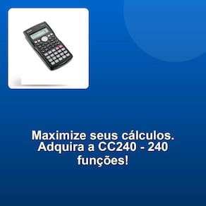 Com um impressionante conjunto de 240 funções, incluindo cálculos fatoriais, estatísticos, logaritmos, conversões trigonométricas, operações com frações, combinação e permutação, a CC240 transforma desafios matemáticos em soluções rápidas e eficientes. Seu display de 12 dígitos em duas linhas, com tecnologia Dot Matrix e números bem definidos, permite a visualização simultânea de cálculos e fórmulas, tornando o processo mais intuitivo, claro e livre de erros.