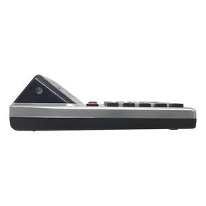 Funções: adição, subtração, multiplicação, divisão, potência, M+, M-, MR, MC e luz UV
