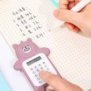 Calculadora de Bolso e Mesa Ursinho 08 Dígitos 6 Operações Led Fofo Papelaria Kawaii