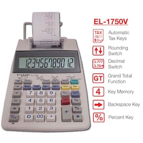 Um LCD de 12 dígitos permite o uso de números grandes, enquanto a impressão em duas cores facilita a diferença entre valores positivos e negativos. Calendário integrado e funcionalidade de relógio. Um layout profissional de teclado permite que você insira números rapidamente. As chaves de custo, venda e margem facilitam a determinação das margens de lucro, enquanto a memória de quatro chaves oferece a capacidade de economizar números comumente utilizados para uma entrada mais rápida. Uma tecla grande total integrada possibilita adicionar os resultados de vários cálculos ao apertar de um botão. Esta calculadora de impressão nítida é alimentada por bateria e CA para maior flexibilidade. - Alimentado por 4 pilhas AA, adaptador de energia não incluído, inclui rolo de papel tamanho inicial