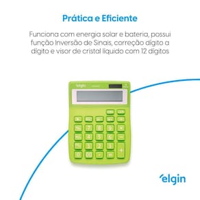 Aproveite a conveniência e a eficiência da Calculadora de Mesa com 12 dígitos verde. Contém visor de cristal líquido nítido e de fácil leitura para que você possa realizar cálculos com precisão e rapidez. Além das operações básicas de adição, subtração, multiplicação e divisão, a calculadora também oferece recursos avançados, como cálculo de porcentagem, inversão de sinais, opção de duplo zero para facilitar a entrada de números, função GPM, memória II, tecla Erase, seletor decimal e de arredondamento.Para tornar sua vida ainda mais fácil, a calculadora possui função de correção dígito a dígito e memória para armazenar resultados e valores importantes. Com opções de alimentação por bateria ou célula solar, você poderá utilizar a calculadora onde e quando quiser. Adquira já a sua calculadora de mesa e experimente a praticidade e a eficiência que ela oferece.