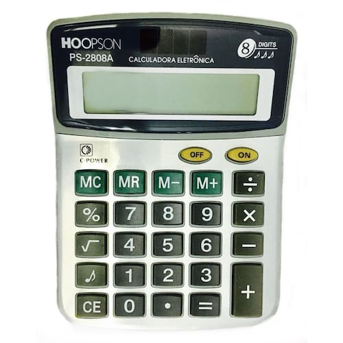 Calculadora De Mesa Ps-2808A Hoopson Calculadora eletrônica, fabricada em plástico resistente na cor prata.