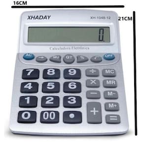 Calculadora GRANDE GRANDE 16x21 cm desligamento automático Calculadora grande 16x21 cm desligamento automático 12 díg. Para ser usada em balcões e comércio em geral. Modelo grande com botões e números grandes para não errar e de fácil visualização. 12 dígitos. Desligamento automático. Multi função. Memória independente. Corpo resistente. Funciona com 1 pilha tamanho AA. Marca: Shaday
