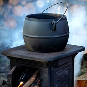 Caldeirão Bojudo Tampa e Alça Ferro Panela Mineira 14cm 2L O Caldeirão Bojudo Tampa de Ferro da Panela Mineira possui um estilo retrô, que remonta a estética de panelas e caçarolas antigas, com fundo reto preto, laterais altas e abauladas, além de uma tampa moderna. Sua excelente distribuição e retenção de calor, característico do ferro fundido, enaltece o sabor e aroma dos alimentos, o tornando ideal para cocções prolongadas. Muito utilizado em buffets de restaurantes e hotéis no preparo de arroz, feijão, carnes, legumes, caldos, ensopados e mais. Onde Usar: Pode ser utilizado em fogões a gás, a lenha, elétricos, cooktops de indução, vitro-cerâmicos, fornos, grills, churrasqueiras e fogo de chão. Orientação de Uso e Conservação:Antes do primeiro uso: Lave com água e sabão, seque bem com um pano e leve ao fogo para remover toda a umidade. Já vem pronta para uso, então não precisa ser curada. Guarde em um local seco. Após cada uso: Lave com água e sabão, usando uma esponja ou escova para remover todos os resíduos de alimentos. Se restarem resíduos, ferva água com um pouco de detergente para soltá-los. Pintura: Revestimento atóxico que garante durabilidade e proteção prolongada, sem causar nenhum dano à saúde. Características Técnicas e Medidas:Altura Com Tampa: 18cm.Altura Sem Tampa: 11cm.Material: Ferro Fundido.Diâmetro: 14cm.Linha: Artesanal.Modelo: Oval.Tampa: Ferro.Peso: 2,95Kg.Litragem: 2L.Alças: Ferro. Itens Inclusos:01 Caldeirão Bojudo Ferro Fundido Panela Mineira 14cm 2L.01 Tampa em Ferro Fundido Panela Mineira 12cm.01 Batoque em Ferro Fundido. Código: 837PMProdutoLojaPlast.