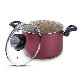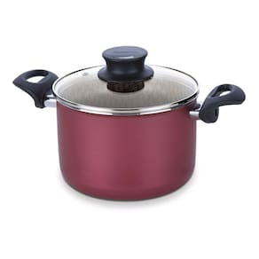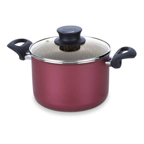 Alumínio com revestimento interno e externo de antiaderente Starflon T1. Alças de baquelite antitérmico e pegador de nylon. Tampa de vidro temperado com saída de vapor e borda de aço inox.