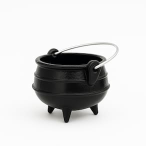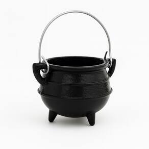 Leve, resistente e funcional, este caldeirão preto de alumínio com tripé e alça é ideal para uso decorativo, ritualístico ou esotérico.Com capacidade de 100 ml, é perfeito para trabalhos espirituais, defumações, queimas de ervas, incensos em carvão ou como elemento decorativo no altar.