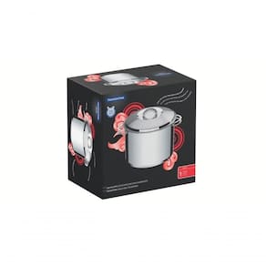 Antes do uso: remova as eventuais etiquetas e lave com água quente, detergente e esponja macia. Outros tipos de produto como palha de aço, poderão riscar ou prejudicar o acabamento da peç de uso: não deixe o caldeirão vazio sobre uma fonte de calor. Use uma fonte de calor brando para evitar que o alimento grude no fundo do caldeirão. O fundo triplo distribui uniformemente o calor, não sendo necessário o fogo alto. E, além disso, economiza energia. Quando o caldeirão for utilizado no fogão a gás, a chama não deve ultrapassar a base do caldeirão. No caso de uso de chapa elétrica, a chapa deverá ter diâmetro igual ou inferior ao do caldeirão. Sempre dissolva o sal em água fervendo ou com os alimentos, mexendo os ingredientes no início do cozimento. Não aqueça o alimento colocando um caldeirão do mesmo diâmetro sobre o outro. Esse procedimento é perigoso, pois cria vácuo e impossibilita a retirada do mesmo. Se a tampa do caldeirão ficar presa pelo efeito do vácuo durante o resfriamento, basta puxar ou aquecer novamente até neutralizar o efeito do vácuo. As alças de inox aquecem durante o cozimento. Aconselhamos o uso de luvas durante o manuseio. Alguns alimentos que possuem amido, como massa e arroz, poderão deixar manchas na parte interna do caldeirão durante o cozimento. Deixe caldeirões quentes somente em superfícies resistentes ao calor. Pode ir ao forno em temperatura máxima de 260C, podendo haver mudança na coloraçãós o uso: para remover facilmente as manchas, passe um pano umedecido com suco de limão ou vinagre. Evite deixar alimento no caldeirão por muito tempo o sal também pode provocar manchas. Para que o caldeirão de aço inox fique sempre bonito e com brilho, recomendamos que seja lavado somente com detergente e esponja. Depois da lavagem, sempre que possível, enxágue o caldeirão com água quente e seque-o imediatamente, para que ele mantenha o brilho , pois o cloro e as substâncias contidas na água podem deixar manchas no caldeirão. Não guarde a peça em locais úmidos. A umidade também provoca manchas. Para manter o brilho, a Tramontina desenvolveu uma pasta especial para polir e remover manchas nos produtos de aço inox, que está disponível nos principais pontos de venda (94537000).- Foto meramente ilustrativa.