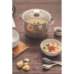 - Use uma fonte de calor brando para evitar que o alimento grude no fundo do caldeirão. O fundo triplo distribui uniformemente o calor, não sendo necessário o fogo alto. E, além disso, você economiza energia.