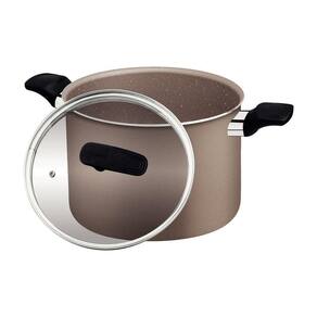 O caldeirão Tramontina Milazzo em alumínio com revestimento interno e externo em antiaderente Starflon Max amêndoa 26 centímetros de diâmetro 9,6 litros é ideal para grandes preparos. Produzido em alumínio com revestimento antiaderente Starflon Max, assegura um cozimento uniforme e fácil limpeza, evitando que os alimentos grudem. Suas alças de baquelite antitérmico com acabamento soft-touch garantem manuseio seguro e confortável. Inclui tampa de vidro temperado com saída de vapor e borda de aço inox, permitindo visualizar o preparo dos alimentos sem perder calor. Ele pode ser em fogões a gás, elétrico e vitrocerâmico, proporcionando grande versatilidade. Torne seus preparos mais eficientes e práticos com a qualidade e inovação da Tramontina!