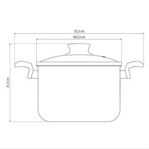 Caldeirão Tramontina Paris em Alumínio com Revestimento Interno e Externo em Antiaderente Starflon Max Vermelho com Tampa de Vidro 22 cm 5,7 L O caldeirão Tramontina Paris em alumínio com revestimento interno e externo em antiaderente Starflon Max vermelho com tampa de vidro 22 centímetros 5,7 litros é a escolha certa para preparar suas receitas e surpreender seus convidados. É produzido em alumínio com espessura de 1,8 milímetros e tem revestimento interno e externo em antiaderente Starflon Max, ambas características que proporcionam um cozimento rápido e uniforme dos alimentos, evitam que eles grudem em sua superfície, e devido a isso, o tornam também muito mais fácil de limpar. Para maior segurança, ele conta com alças em baquelite antitérmico e pegador em nylon, materiais que não aquecem e oferecem um manuseio muito mais confortável. O caldeirão possui tampa de vidro e pode ser lavado na máquina de lavar louças, otimizando suas tarefas na cozinha! Corpo de alumínio com espessura de 1,8 mm que proporciona cozimento rápido e uniforme. Revestimento interno e externo de antiaderente Starflon Max que não gruda, é fácil de limpar, mais durável e não é prejudicial à saúde, pois é livre de PFOA. Tampa de vidro temperado, com saída de vapor e borda de aço inox. Alças de baquelite antitérmico e pegador de nylon que oferecem segurança durante o manuseio. Pode ir à máquina de lavar louças facilitando seu dia a dia. Cuidados com o produto A capacidade volumétrica máxima para cozimento é de 3/4 da capacidade total da peça. Em fogões com grade, centralize a peça e alinhe as alças com a grade. Centralize seu utensílio com a chama ou fonte de calor. Utensílios quentes devem estar fora do alcance das crianças. Antes do primeiro uso, lave com esponja macia, sabão neutro ou detergente líquido. Depois de secar, unte a área interna com óleo ou gordura e leve ao fogo por um ou dois minutos. Deixe esfriar e lave novamente. Seu utensílio Starflon está pronto para uso com ou sem gordura, sempre em fogo baixo ou médio (nunca superior a 260 °C). Para mexer os alimentos use somente utensílios de silicone, nylon ou madeira. Com o uso, as alças e o pegador podem afrouxar devido à dilatação normal dos materiais. Reaperte apenas o suficiente, sem forçar. Limpeza: Evite a imersão do utensílio quente em água fria. Nunca utilize produtos abrasivos na lavagem. Se deixar queimar alimentos, umedeça a área e reserve até que possa remover os resíduos grudados com esponja e sabão. Para descarte do produto e embalagem siga as orientações de reciclagem vigentes. Garantia 90 dias para vícios ou defeitos de fabricação.