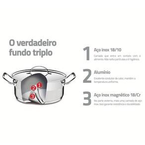 Modelo: Professional Aço Inox Fundo Triplo com Tampa Plana Detalhe Satinado 24 cm de diâmetro 7,8 L 62625/240
