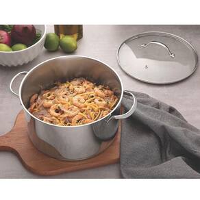 Modelo: Caldeirão Una em Aço Inox com Fundo Triplo e Tampa de Vidro 7,7 L 24 cm de Diâmetro 7,7 Litros 62285/240