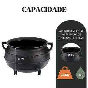 Caldeirão Tripé 28 cm 12 L em Ferro Fundido Panela Mineira - Especificações Técnicas