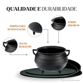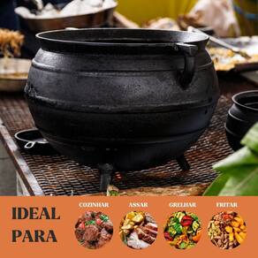 O Caldeirão Tripé Panela Mineira é uma peça robusta e tradicional, ideal para grandes preparos como feijão, caldos, ensopados, carnes, molhos e receitas típicas feitas em maior volume. Seu formato profundo e o tripé integrado permitem o uso direto sobre brasas, fogão a lenha ou chama aberta, mantendo a tradição do preparo artesanal.Produzido em ferro fundido, garante excelente distribuição e retenção de calor, proporcionando cozimento uniforme mesmo em longos períodos.