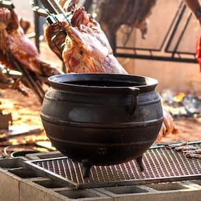 O Caldeirão Tripé Alça de Ferro da Panela Mineira é o tradicional caldeirão de ferro, em um estilo retrô que remonta o design de caçarolas e tachos antigas. Possui uma base e fundo arredondado, além de 03 pezinhos como apoio. Sua perfeita distribuição e retenção do calor promove uma cocção prolongada que enaltece o sabor e aroma dos alimentos. Pode ser utilizado para preparar diversas receitas, como caldos, tropeiros, carreteiros, carnes, copas, polentas, peixes, entre outros. Muito utilizada em eventos pela sua apresentação e por manter-se quente por muito mais tempo.