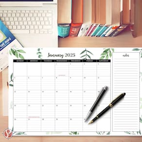 - Ótimo calendário de mesa ou mesa – tem um design de vegetação bonito e elegante com grandes caixas em branco, pautadas para sua conveniência e uma seção de notas na lateral. Há muito espaço para escrever e, se você for uma pessoa com detalhes orientados, esta agenda é perfeita para você.
