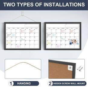 - 2 opções de montagem – você pode pendurar o calendário da placa apagável a seco na parede ou montá-lo na parede com os parafusos incluídos.