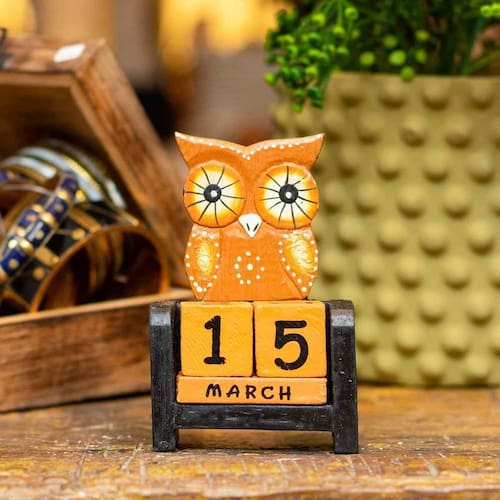 Calendário Coruja Marrom de Madeira Balsa de Bali Calendário Coruja Marrom de Madeira Balsa de Bali A coruja é a ave soberana da noite e para muitos povos elas simbolizam o mistério, a inteligência, a sabedoria e o conhecimento. Simboliza também a reflexao e o conhecimento intuitivo. Nosso calendário de coruja é perfeito para decorar o seu ambiente. É feito de madeira balsa e possui 5 blocos, sendo 2 com números e 3 com os meses do ano. Adquira o seu calendário e deixe a sua casa ou escritório mais bonito. Material: madeira balsa Cor Predominante: Marrom Claro e Escuro Peso: aproximadamente 50g Largura: 7,5cm Altura: 10cm Profundidade: 4cm Origem: bali O produto é artesanal, fabricado e de Bali e por isso pode apresentar pequenas variações de cor, tonalidade, brilho, peso e tamanho. Não deixe a sua peça em contato prolongado com a água, a não ser que seja peça que possa ser exposta ao sol e chuva. As fotos são ilustrativas. Qualquer produto adicional utilizado na composição das fotos deve ser comprado separadamente. Marca: Balisun Ean: 7891535385778