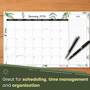 - Ótimo calendário de mesa ou mesa — Tem um lindo e elegante design de vegetação com grandes caixas em branco, pautadas para sua conveniência e uma seção de anotações ao lado. Há muito espaço para escrever e, se você é uma pessoa detalhista, esse planejador é perfeito para você.