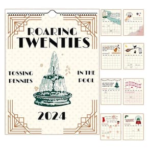 📆?Tema de Roaring Twenties de inspiração vintage?Volte no tempo com este calendário lindamente projetado, com ilustrações impressionantes e tipografia vintage, apresentando obras de arte impressionantes e capturando o espírito de uma era icônica.