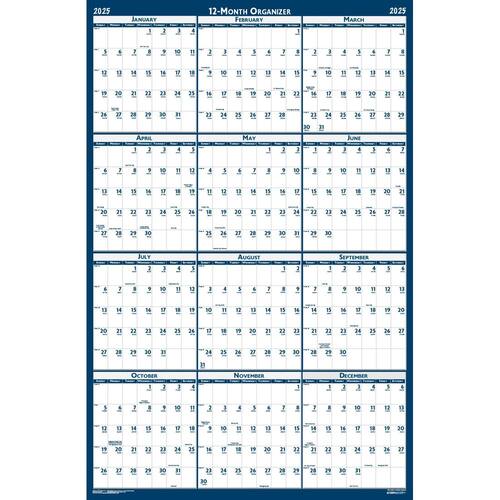 House of Doolittle Calendário de parede laminado 2025, reversível, horizontal/vertical, 166 x 83 cm, janeiro a dezembro (HOD3962-25)