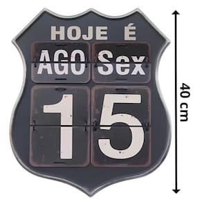 Calendário Decorativo Parede Vintage Retrô Flip 40cm Preto Calendário Decorativo Parede Vintage Retrô Flip 40cm Preto - Calendário De Metal Estilo Placa Route 66 Inspirado no icônico espírito da histórica estrada americana Route 66, este calendário é uma mistura perfeita de funcionalidade e estilo retrô. Construído com metal de alta qualidade e um design impecável de 40cm, o calendário exibe um acabamento robusto, evocando os dias em que as viagens por estrada eram uma aventura emocionante. Seus detalhes meticulosamente trabalhados apresentam a estética vintage, tornando-o uma peça central digna de qualquer parede.