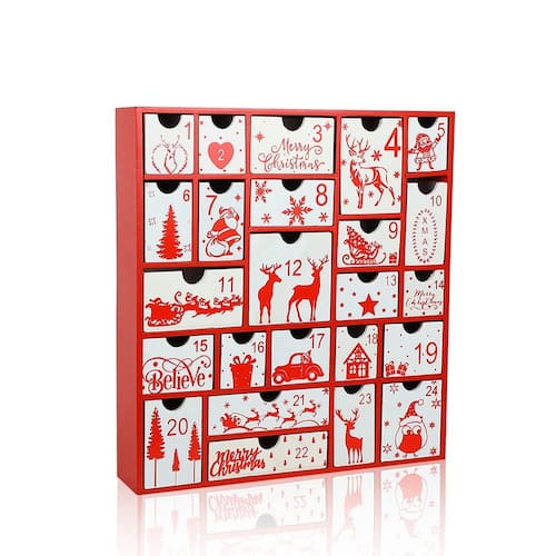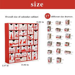 Calendário do Advento Aoutrow com 24 gavetas de armazenamento, contagem regressiva para o Natal, decoração de advento de Natal em madeira vermelha de 24 dias