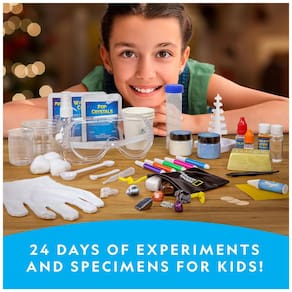 24 DIAS DE CIÊNCIA Todos os dias de dezembro, à medida que o Natal se aproxima, as crianças abrirão um emocionante experimento científico para realizar com nossos kits científicos de classe mundial, ou uma pedra preciosa ou fóssil para adicionar à sua coleção
