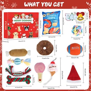 Se você tem uma raça pequena ou um cachorro grande, este calendário do advento oferece algo para cada filhote. De brinquedos interativos a opções duráveis de mastigar, é a maneira perfeita de manter seu animal de estimação envolvido e feliz durante as festas de fim de ano. Além disso, os designs festivos o tornam um ótimo complemento para a coleção de Natal do seu cachorro!