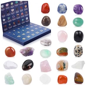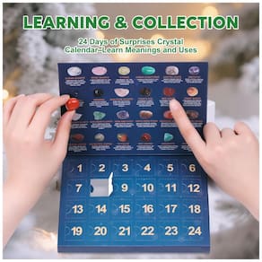 Celebre a contagem regressiva para o Natal com um mágico calendário do advento de 2025, apresentando 24 gemas e cristais de cura cuidadosamente selecionados. Cada dia revela uma pedra única, perfeita para crianças curiosas, iniciantes em cristais e amantes da natureza. Descubra uma mistura de pedras polidas e brutas, incluindo Madeira Petrificada, Quartzo Rosa, Ametista, Quartzo Transparente, Aventurina Verde, Olho de Tigre, Obsidiana, Amazonita e muito mais. Uma forma divertida de explorar a beleza dos tesouros da Terra. Projetado para despertar a curiosidade, este calendário do advento de gemas ensina crianças sobre geologia, minerais e energia dos cristais. Um instrumento de aprendizado prático que inspira mentes jovens por meio de atividades interativas e descobertas. Presente de Natal atencioso e perfeito para crianças, adolescentes e amantes de cristais de todas as idades. Ideal para presentear no Natal, festas de fim de ano, recompensas escolares ou como atividade diária relaxante em dezembro. Estimule a diversão e o aprendizado sem telas com este calendário de avento de cristais. Ótimo para salas de aula, aprendizado em casa ou momentos de união familiar. Apoia o interesse pela ciência e geologia, além de promover a atenção plena e a curiosidade.