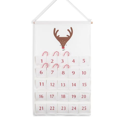 - Calendário festivo do Advento: contagem regressiva para o Natal com este encantador calendário de parede com 25 bolsos numerados.