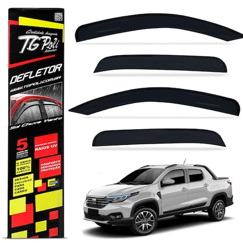 Defletor de chuva Tgpoli Fiat Strada CD 2020 a 2023 fumê Acrílico Inteiriça 4 Portas