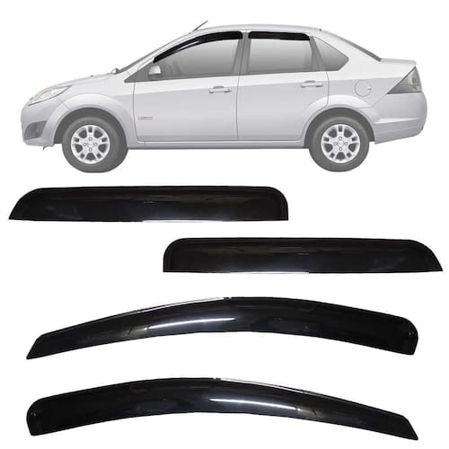 Com nossas calhas mesmo em dias chuvosos nos permitem de abrir as janelas de 4cm a 6cm dependendo do nível da chuva, e reduzindo os ruídos dos ventos quando a janela estiver aberta dando a possibilidade de ventilar o carro. Modelo: calha de chuva para ford fiesta sedan rocam 2002 a 2011 4 portas. Especificação técnica: - 100% acrílico - modelo específico do veículo - tamanho padrão de fábrica - cor fumê - reduz ruídos do vento - permite abrir em média 4cm do vidro em dias chuvosos - possui sistema de fixação por fita 3m - acompanha 1 primer para limpeza