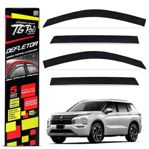 Defletor de chuva Tgpoli Mitsubishi Outlander 2014 a 2023 Fumê Acrílico 4 Portas Inteiriça