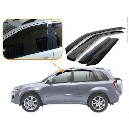 Com nossas calhas mesmo em dias chuvosos nos permitem de abrir as janelas de 4cm a 6cm dependendo do nível da chuva, e reduzindo os ruídos dos ventos quando a janela estiver aberta dando a possibilidade de ventilar o carro. MODELO: Calha de Chuva para Chery Tiggo 2010 a 2017 4 Portas. Especificação Técnica: - 100% Acrílico - Modelo específico do veículo - Tamanho padrão de fábrica - Cor Fumê - Reduz ruídos do vento - Permite abrir em média 4cm do vidro em dias chuvosos - Possui sistema de fixação por fita 3M - Acompanha 1 Primer para limpeza ITENS INCLUSOS: - 1 Conjunto de Calha de Chuva. - 1 Primer para limpeza DIMENSÕES Tamanho padrão conforme as especificações da montadora. INSTALAÇÃO A instalação é feita de forma simples, podendo ser feita por você mesmo. de 30 dias para defeitos de fabricação. Marca: Não Informado
