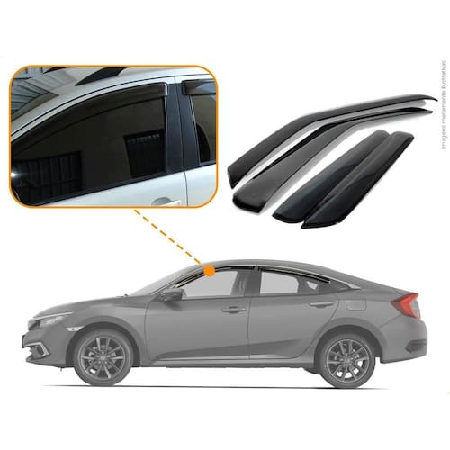 Especificação Técnica: - 100% Acrílico - Modelo específico do veículo - Tamanho padrão de fábrica - Cor Fumê - Reduz ruídos do vento - Permite abrir em média 4cm do vidro em dias chuvosos - Possui sistema de fixação por fita 3M - Acompanha 1 Primer para limpeza