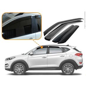 Com nossas calhas mesmo em dias chuvosos nos permitem de abrir as janelas de 4cm a 6cm dependendo do nível da chuva, e reduzindo os ruídos dos ventos quando a janela estiver aberta dando a possibilidade de ventilar o carro. Modelo: Calha de chuva para hyundai tucson 2017 a 2020 4 portas. Especificação técnica: - 100% acrílico - modelo específico do veículo - tamanho padrão de fábrica - cor fumê - reduz ruídos do vento - permite abrir em média 4cm do vidro em dias chuvosos - possui sistema de fixação por fita 3m - acompanha 1 primer para limpeza Itens inclusos: - 1 conjunto de calha de chuva. - 1 primer para limpeza Dimensões Tamanho padrão conforme as especificações da montadora. Instalação A instalação é feita de forma simples, podendo ser feita por você mesmo. de 30 dias para defeitos de fabricação. Marca: Não Informado