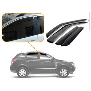 Com nossas calhas mesmo em dias chuvosos nos permitem de abrir as janelas de 4cm a 6cm Dependendo do nível da chuva, e reduzindo os ruídos dos ventos quando a janela estiver aberta Dando a possibilidade de ventilar o carro. MODELO: Calha de Chuva para Chevrolet Captiva 2008 a 2013 4 portas. Especificação Técnica: - 100% Acrílico - Modelo específico do veículo - Tamanho padrão de fábrica - Cor Fumê - Reduz ruídos do vento - Permite abrir em média 4cm do vidro em dias chuvosos - Possui sistema de fixação por fita 3M - Acompanha 1 Primer para limpeza ITENS INCLUSOS: - 1 Conjunto de Calha de Chuva. - 1 Primer para limpeza DIMENSÕES Tamanho padrão conforme as especificações da montadora. INSTALAÇÃO A instalação é feita de forma simples, podendo ser feita por você mesmo. de 30 dias para defeitos de fabricação. Marca: Não Informado