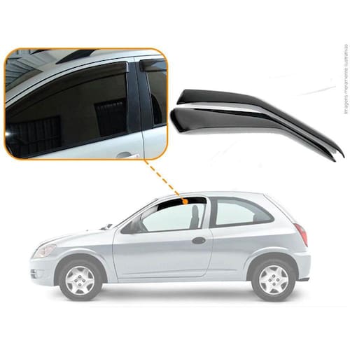 Calha de Chuva GM Celta 2000 2001 2002 a 2014 2015 2016 2017 Com nossas calhas mesmo em dias chuvosos nos permitem de abrir as janelas de 4cm a 6cm dependendo do nível da chuva, e reduzindo os ruídos dos ventos quando a janela estiver aberta dando a possibilidade de ventilar o carro.