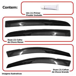 Especificação técnica: - 100% acrílico - modelo específico do veículo - tamanho padrão de fábrica - cor fumê - reduz ruídos do vento - permite abrir em média 4cm do vidro em dias chuvosos - possui sistema de fixação por fita 3m - acompanha 1 primer para limpeza