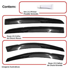 Com nossas calhas mesmo em dias chuvosos nos permitem de abrir as janelas de 4cm a 6cm dependendo do nível da chuva, e reduzindo os ruídos dos ventos quando a janela estiver aberta dando a possibilidade de ventilar o carro. Modelo: Calha de chuva para chevrolet vectra hatch 2006 a 2011 4 portas. Especificação técnica: - 100% acrílico - modelo específico do veículo - tamanho padrão de fábrica - cor fumê - reduz ruídos do vento - permite abrir em média 4cm do vidro em dias chuvosos - possui sistema de fixação por fita 3m - acompanha 1 primer para limpeza Itens inclusos: - 1 conjunto de calha de chuva. - 1 primer para limpeza Dimensões Tamanho padrão conforme as especificações da montadora. Instalação A instalação é feita de forma simples, podendo ser feita por você mesmo. de 30 dias para defeitos de fabricação. Marca: Não Informado