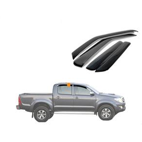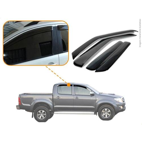 Calha de chuva hilux cabine dupla 2005 a 2015 4 portas Com nossas calhas mesmo em dias chuvosos nos permitem de abrir as janelas de 4cm a 6cm Dependendo do nível da chuva, e reduzindo os ruídos dos ventos quando a janela estiver aberta Dando a possibilidade de ventilar o carro. Modelo: Calha de chuva 100% acrílico do toyota hilux cabine dupla 2005 a 2015 4 portas. Especificação técnica: - 100% acrílico - modelo específico do veículo - tamanho padrão de fábrica - cor fumê - reduz ruídos do vento - permite abrir em média 4cm do vidro em dias chuvosos - possui sistema de fixação por fita 3m - acompanha 1 primer para limpeza Itens inclusos: - 1 conjunto de calha de chuva. - 1 primer para limpeza Dimensões Tamanho padrão conforme as especificações da montadora. Instalação A instalação é feita de forma simples, podendo ser feita por você mesmo. de 30 dias para defeitos de fabricação. Marca: Não Informado