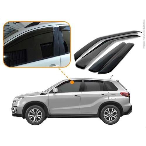 Com nossas calhas mesmo em dias chuvosos nos permitem de abrir as janelas de 4cm a 6cm Dependendo do nível da chuva, e reduzindo os ruídos dos ventos quando a janela estiver aberta Dando a possibilidade de ventilar o carro. MODELO: Calha de Chuva para Suzuki Vitara 2016 a 2022 4 Portas Especificação Técnica: - 100% Acrílico - Modelo específico do veículo - Tamanho padrão de fábrica - Cor Fumê - Reduz ruídos do vento - Permite abrir em média 4cm do vidro em dias chuvosos - Possui sistema de fixação por fita 3M - Acompanha 1 Primer para limpeza ITENS INCLUSOS: - 1 Conjunto de Calha de Chuva. - 1 Primer para limpeza DIMENSÕES Tamanho padrão conforme as especificações da montadora. INSTALAÇÃO A instalação é feita de forma simples, podendo ser feita por você mesmo. de 30 dias para defeitos de fabricação. Marca: Não Informado Ean: 7890437958516