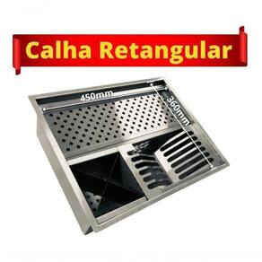 Calha Gourmet traz praticidade e sofisticação para seu projeto, podendo ser instalada no granito, corian, madeira entre outros materiais. Instalação embutida sob o tampo. A calha irá coletar toda água dos escorredores e escoará diretamente pelo esgoto através de um dreno no centro da peça o qual poderá ser ligado no sifão da cuba ou em um ponto exclusivo de esgoto para calha.