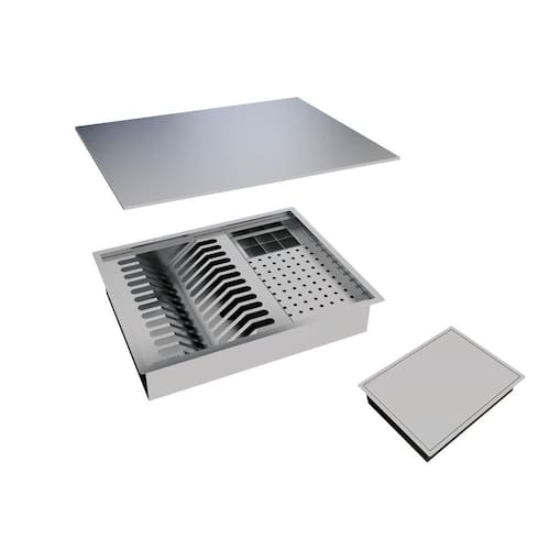 O modelo Quadratta com tampa contém: 01 módulo para pratos (total para 12 pratos), 01 módulo para copos, 01 módulo com 06 recipientes para talheres e utensílios e a exclusiva tampa removível. Tradicionalmente conhecido como escorredor de louças, a calha úmida vai completar sua cozinha e espaço gourmet. A linha Quadratta com tampa removível traz praticidade e sofisticação para seu projeto, podendo ser instalada no granito, corian, madeira entre outros materiais. A exclusiva tampa Calha Úmida permite total aproveitamento da bancada, deixando o espaço mais organizado, moderno e prático para o dia a dia.