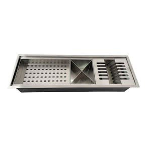 Utilizado para suporte de louças, copos, talheres e utensílios de cozinha Após a lavagem e enxágue. Tradicionalmente conhecido como escorredor de louças, A calha úmida vai completar sua cozinha e espaço gourmet. Trazendo praticidade e sofisticação para seu Projeto, pode ser instalada sobreposta ou embutida irá coletar toda água dos Escorredores e escoará diretamente pelo esgoto através de um dreno no centro da Peça o qual poderá ser ligado no sifão da cuba ou em um ponto exclusivo de Esgoto para calha. Desenvolvido em aço inox de alta qualidade, com Chapa de 1,0 milímetros de espessura e acabamento acetinado escovado, alia Praticidade, modernidade e beleza ao seu ambiente.