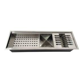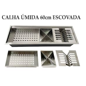 Utilizado para suporte de louças, copos, talheres e utensílios de cozinha Após a lavagem e enxágue. Tradicionalmente conhecido como escorredor de louças, A calha úmida vai completar sua cozinha e espaço gourmet. Trazendo praticidade e sofisticação para seu Projeto, pode ser instalada sobreposta ou embutida irá coletar toda água dos Escorredores e escoará diretamente pelo esgoto através de um dreno no centro da Peça o qual poderá ser ligado no sifão da cuba ou em um ponto exclusivo de Esgoto para calha. Desenvolvido em aço inox de alta qualidade, com Chapa de 1,0 milímetros de espessura e acabamento acetinado escovado, alia Praticidade, modernidade e beleza ao seu ambiente.