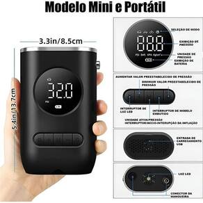 Função Lanterna: Além de inflar pneus e bolas, o compressor conta com uma lanterna embutida, ideal para auxiliar em locais escuros ou situações de baixa visibilidade.